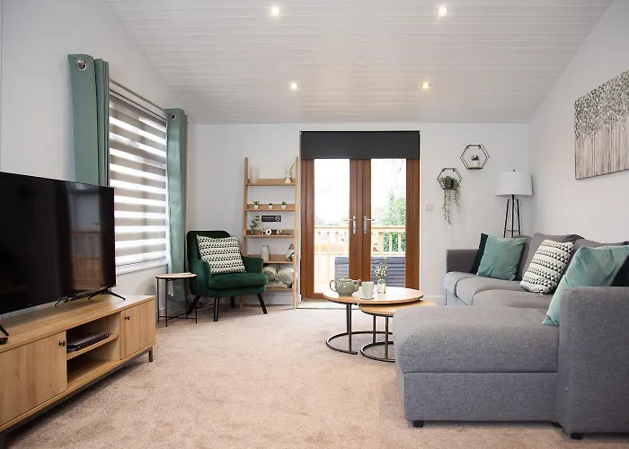 تم تزيين التصميم الداخلي بالمدفأة الحجرية، كما يتميز بوسائل الراحة مثل المكواة ولوح الكيّ ولوازم كيّ الملابس، بالإضافة إلى تلفزيون بشاشة مسطحة مع قنوات فضائية وجهاز التلفزيون. كما تمّ تجهيز 3 Bedroom Lodge With Hot Tub بالأريكة. تم تجهيز الحمام بالمرحاض المنفصل وحوض الاستحمام والدوش، بالإضافة إلى مجفف الشعر وملاءات الحمام.